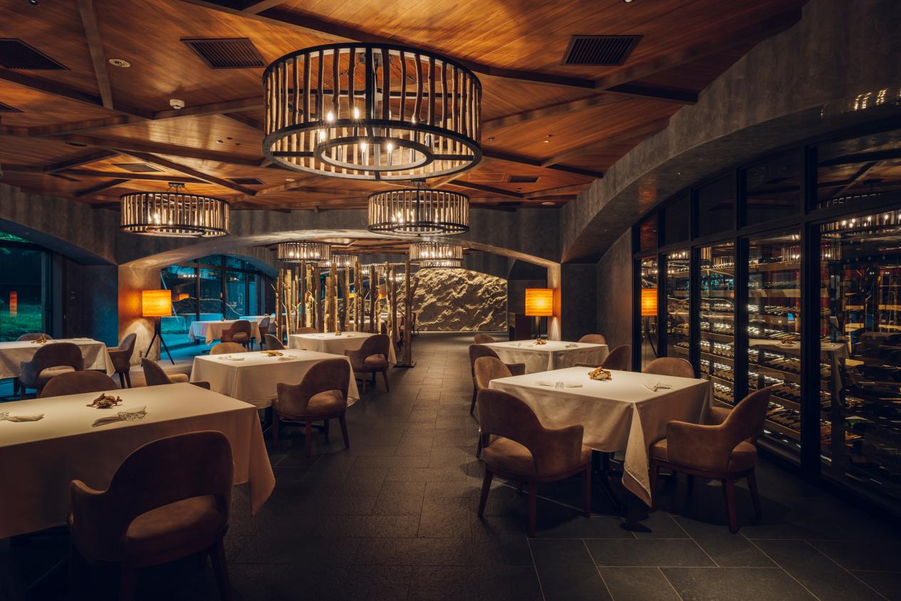 “Sonore”在法语中意为“回响”。餐厅将青森的风土、食材与法式料理艺术融合,设有溪流露台席与全景观餐厅,可在四季更迭的自然中沉浸式用餐。晚餐前的开胃时光开始于露台,伴溪流之音浅酌香槟开启食旅序章。入室后的餐桌空间采用大面积落地窗设计,将秋日山景与室内灯光融为一体,让用餐成为一场“触景入味”的美学体验。